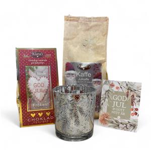 God Jul-paket till Fröken (kaffe, lykta, chokladpraliner & kort)